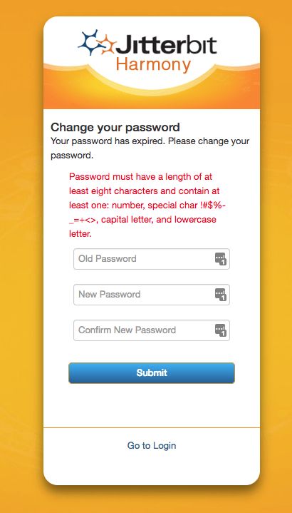 - Must be between 12 and 24 characters. - Must contain at least one uppercase and one lowercase letter. - Must contain at least one number. - Must contain at least one of the following special characters: ~ ` ! @ # $ % ^ & * ( ) _ - . ? { } [ ] | : ; " ' = + / , - Password must not match or contain: first name, last name, email address. - Unicode characters are not permitted. - Must not be one of the previous 24 passwords.