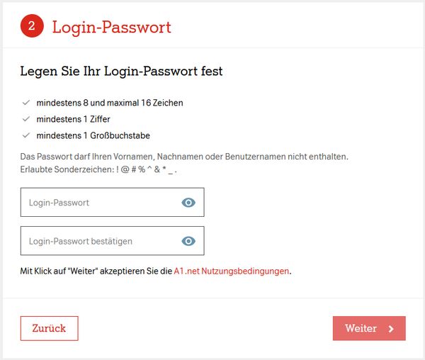- Requires at least 6 to a maximum of 12 characters [sic!] - Allows only digits and letters without umlauts - Allows only specific special characters: ? ! $ \u20AC% & * _ = - +. ,:; / () {} [] ~ @ # - Allows no spaces"